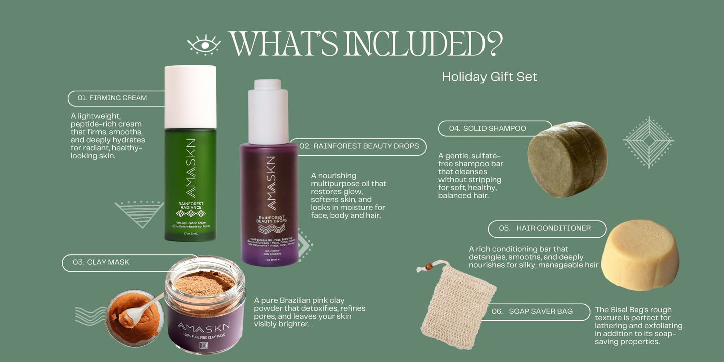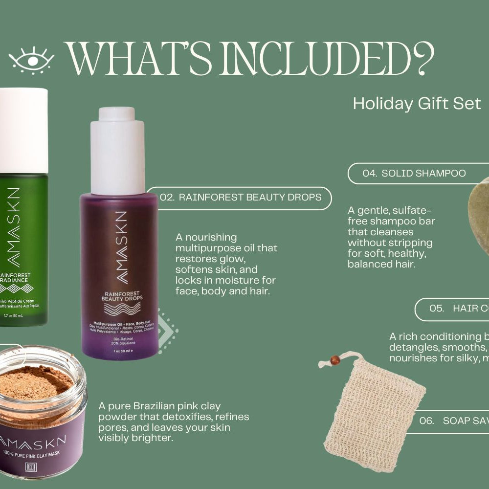 A complete rainforest-powered ritual for firmer skin, a deeper glow, and healthier hair — all in one limited-edition set.